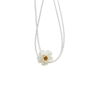 小香风~韩国森系白色米珠山茶花项链气质高级感手工耳环饰品 法式由