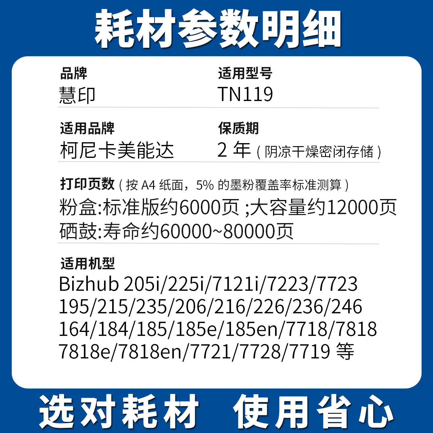为您提供商品7121i 185 236 tn119碳粉墨 慧印适用美能达TN117粉盒Bizhub 235 7723 246 195 7223 206 215 225i 226 205i的详细介绍,