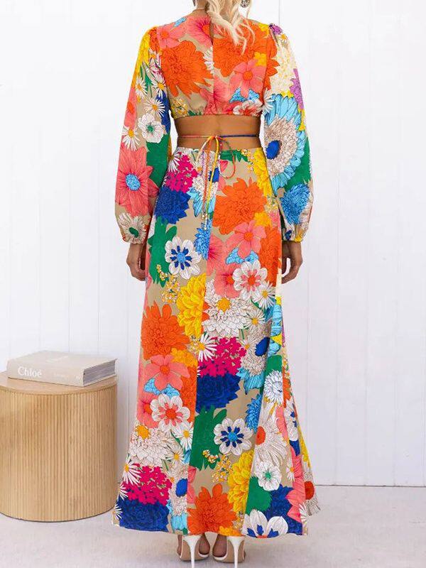 lace floral sleeve 碎花系带连衣裙子 dress外贸女装 长袖 Long