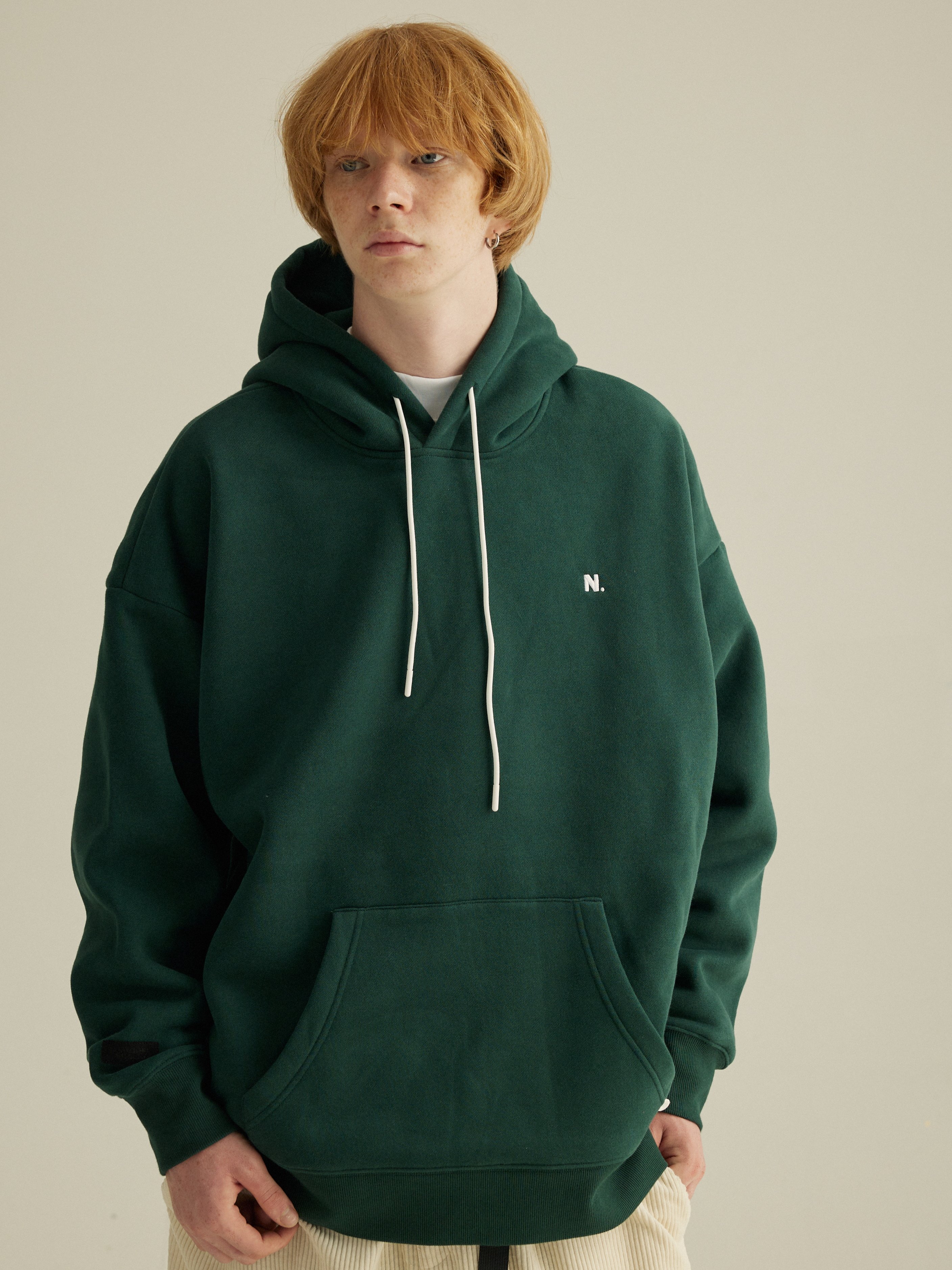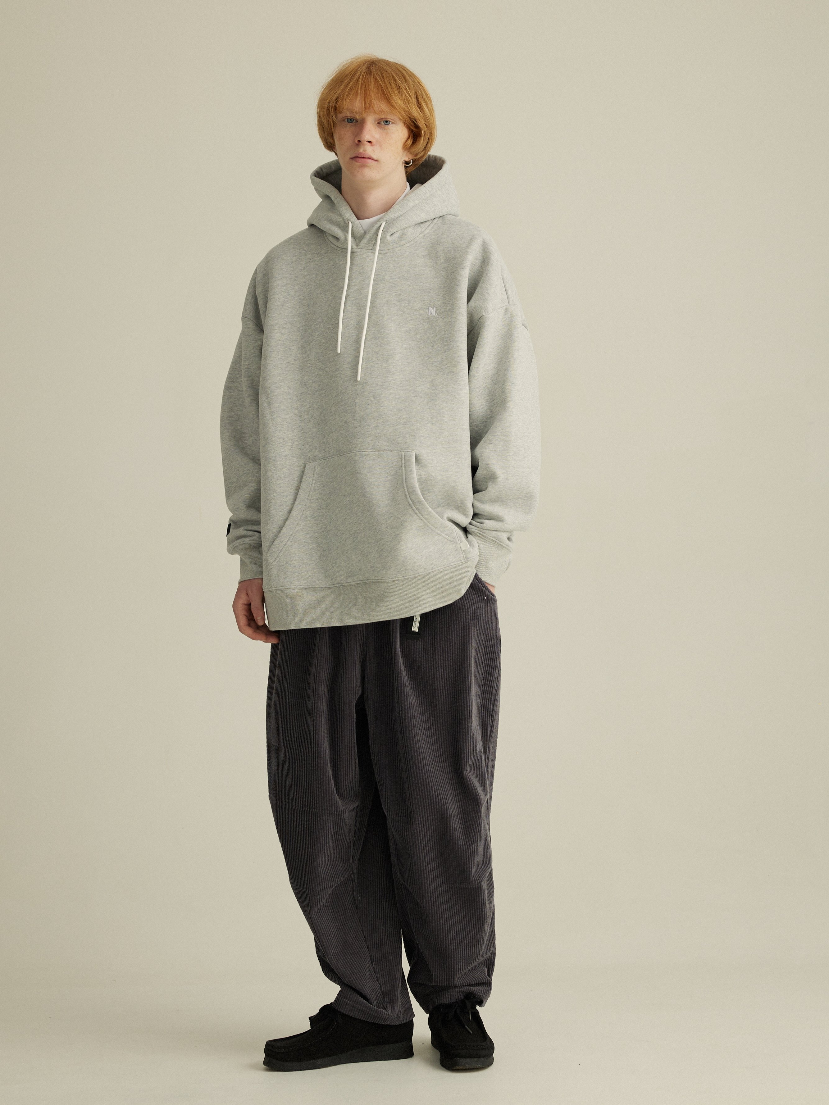 NESSTTU 日系休闲宽松复古情侣基础加绒刺绣连帽卫衣 秋冬新品