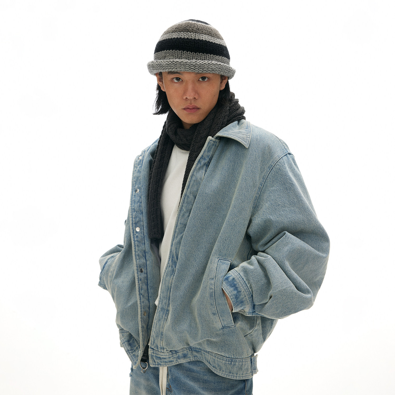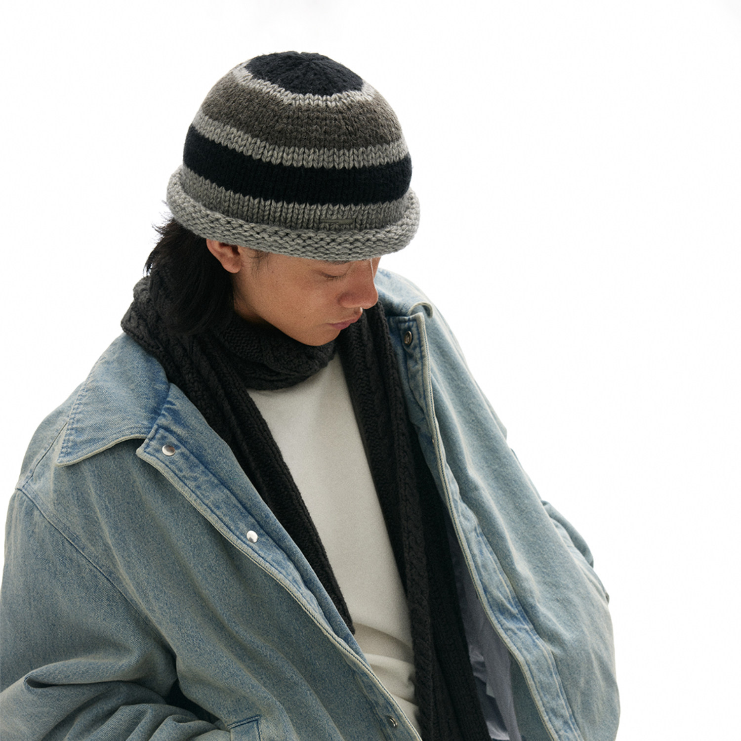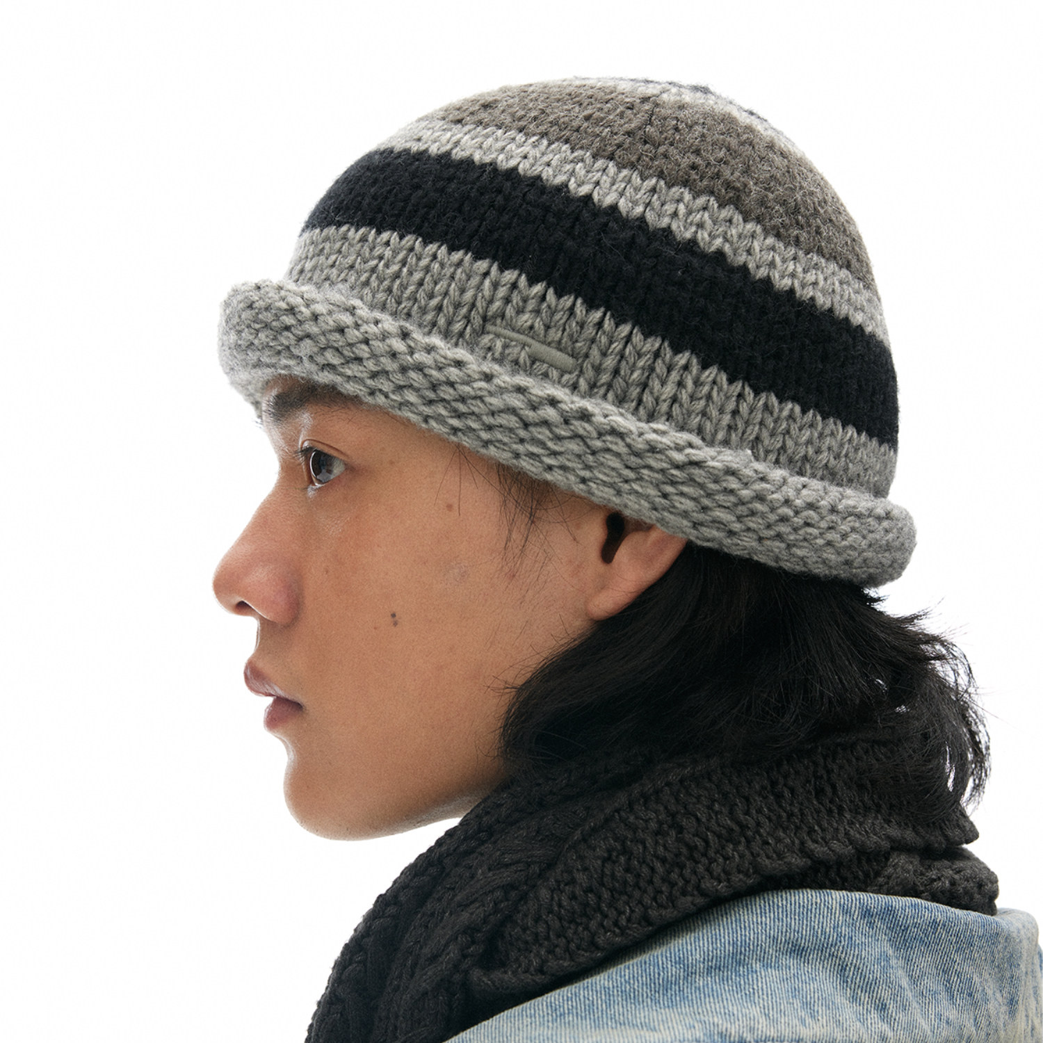 化学制品 C4_BLK GRY CRM_BEANIE 条纹卷檐针织帽