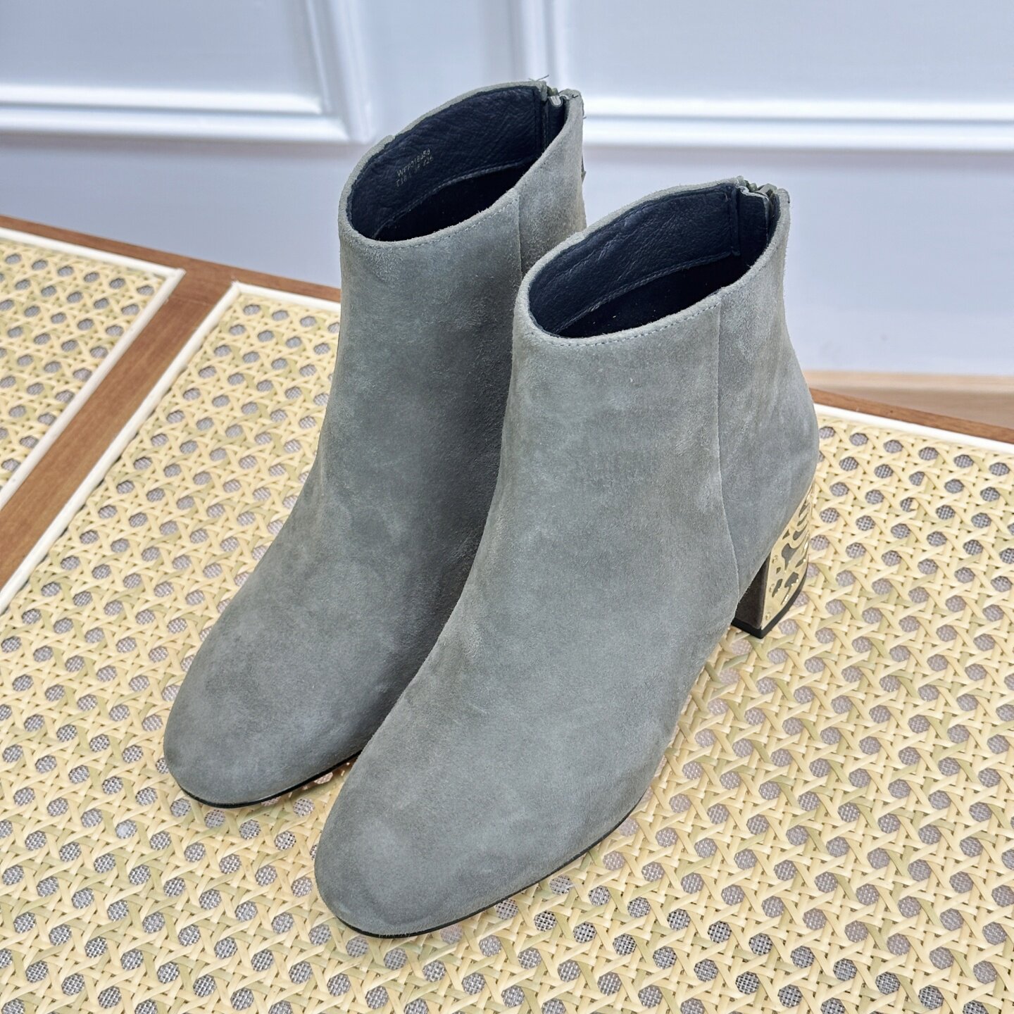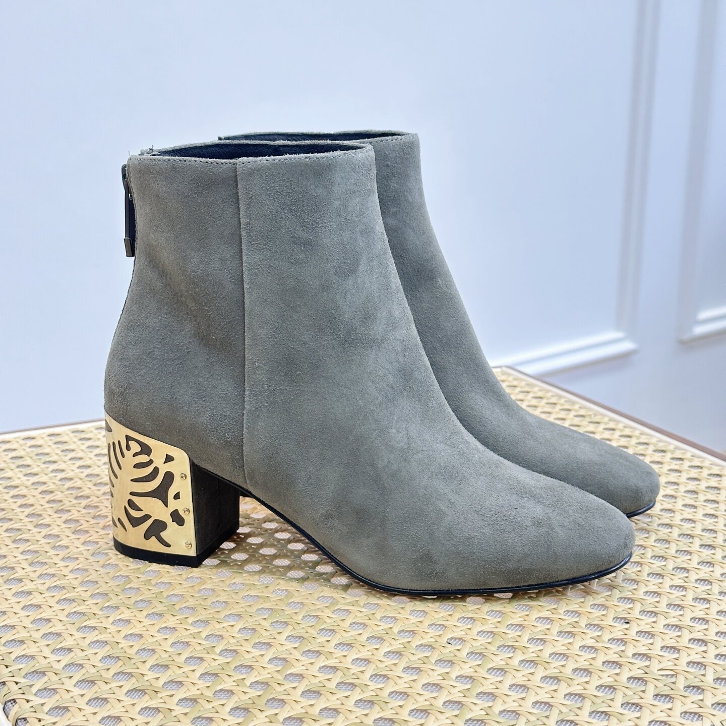 秋冬优雅气质时装 靴低跟圆头方跟侧拉链短靴女WFP318058 FOR WHAT