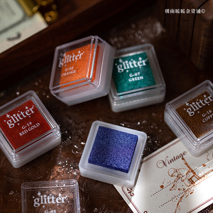 复古珠光印泥迷你便携儿童手指画印章diy自带闪光彩色印台 朝雨