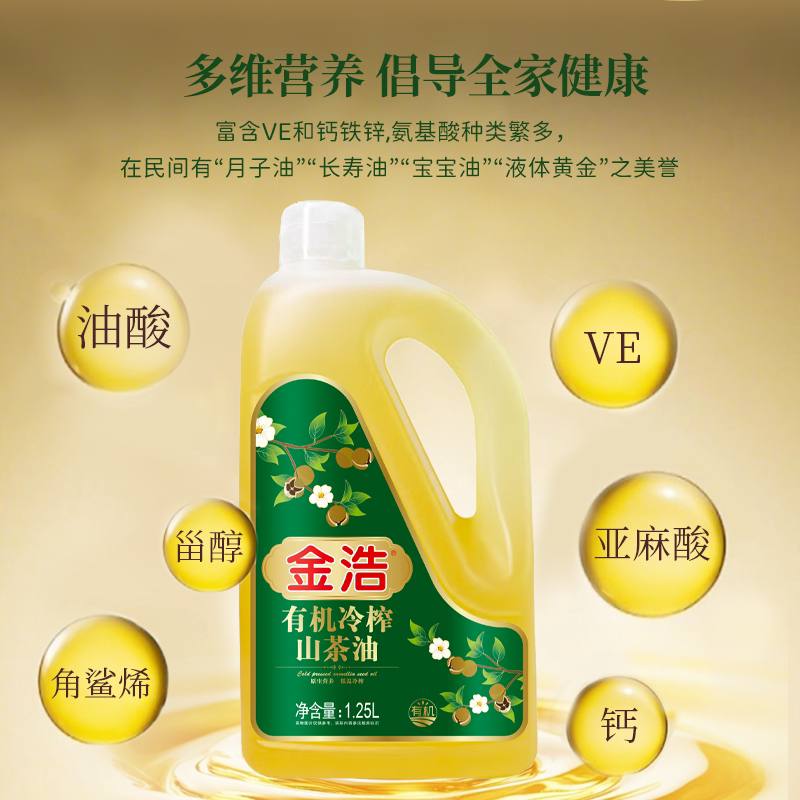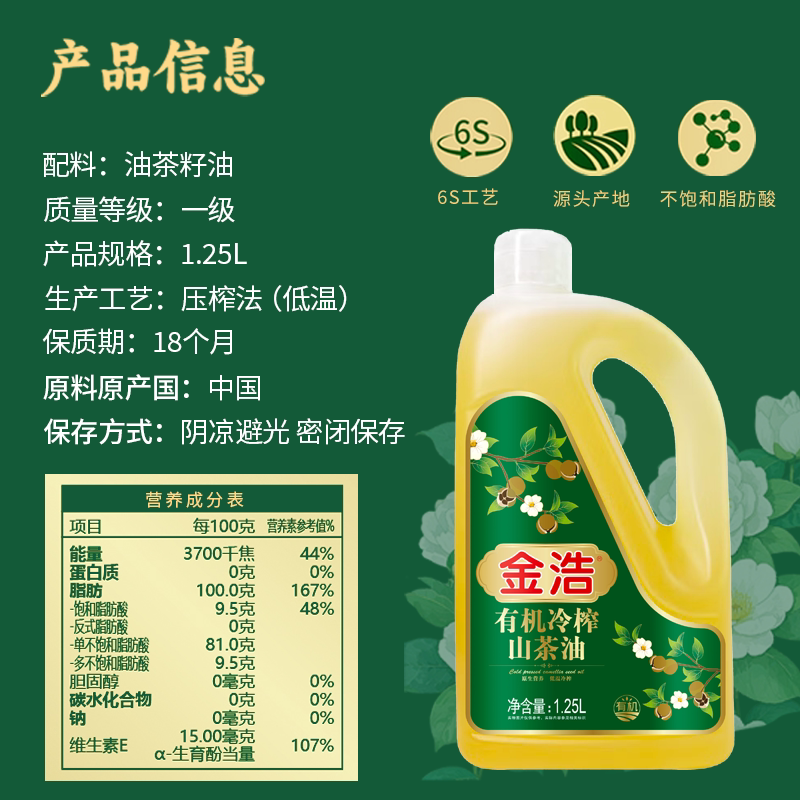 为您提供商品金浩有机低温冷榨山茶油纯正油茶籽油健康食用油1.25L 日期鲜的详细介绍,