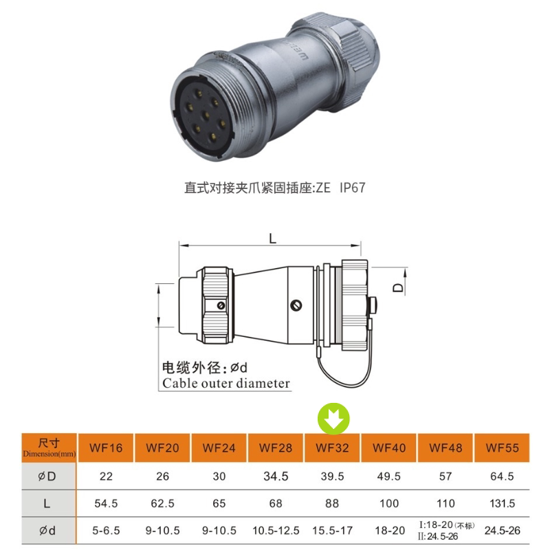 为您提供商品WEIPU威浦WF32 19芯 对接插座 10B ZE直式的详细介绍,