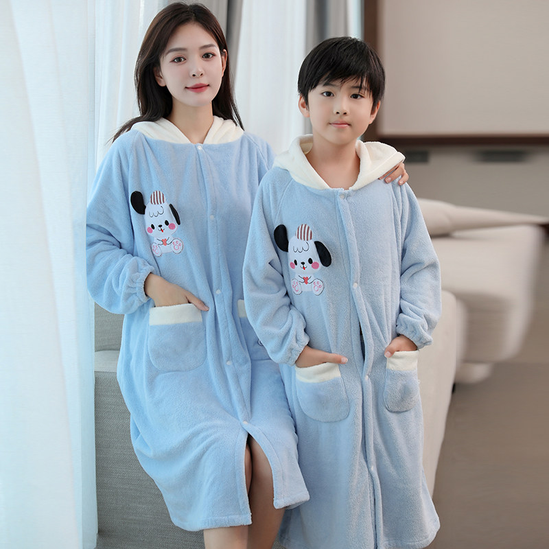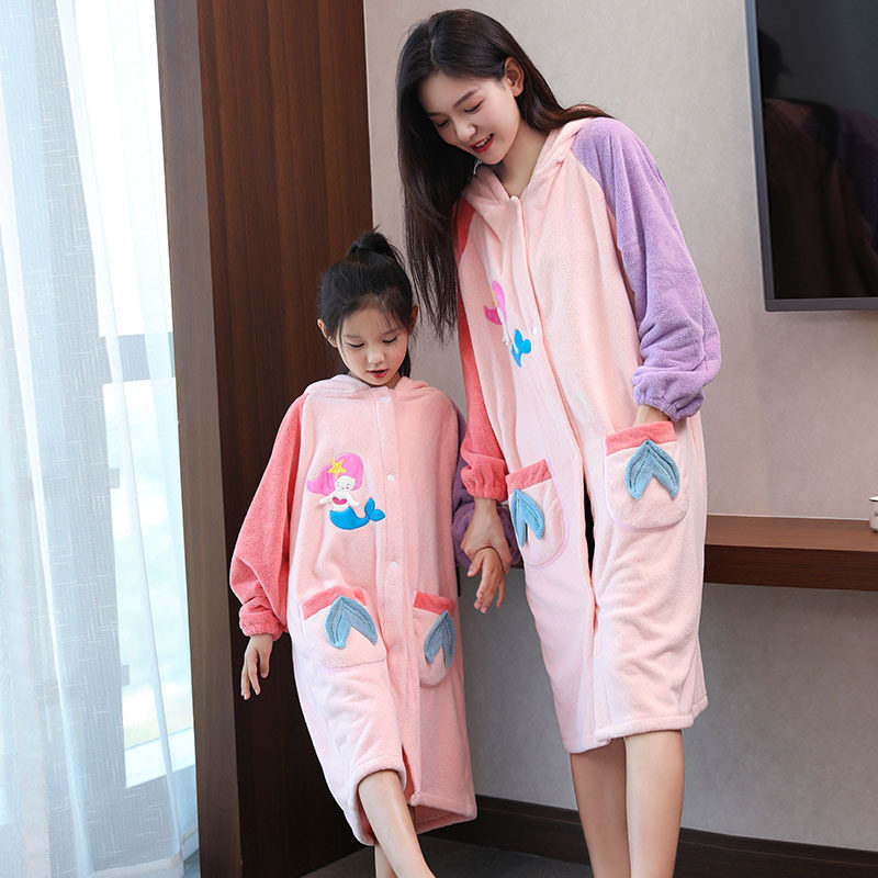 珊瑚绒吸水亲子浴衣浴袍 浴巾可穿可裹大人儿童浴裙斗篷长袖
