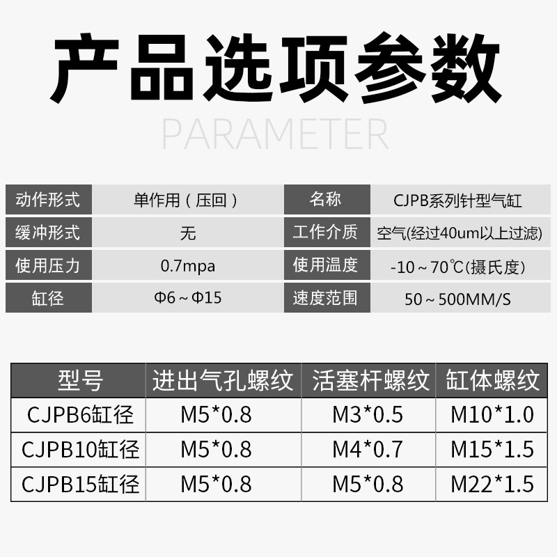 为您提供商品微型单动外螺纹针型气缸MPE单作用小型气动迷你气缸CJPB6的详细介绍,