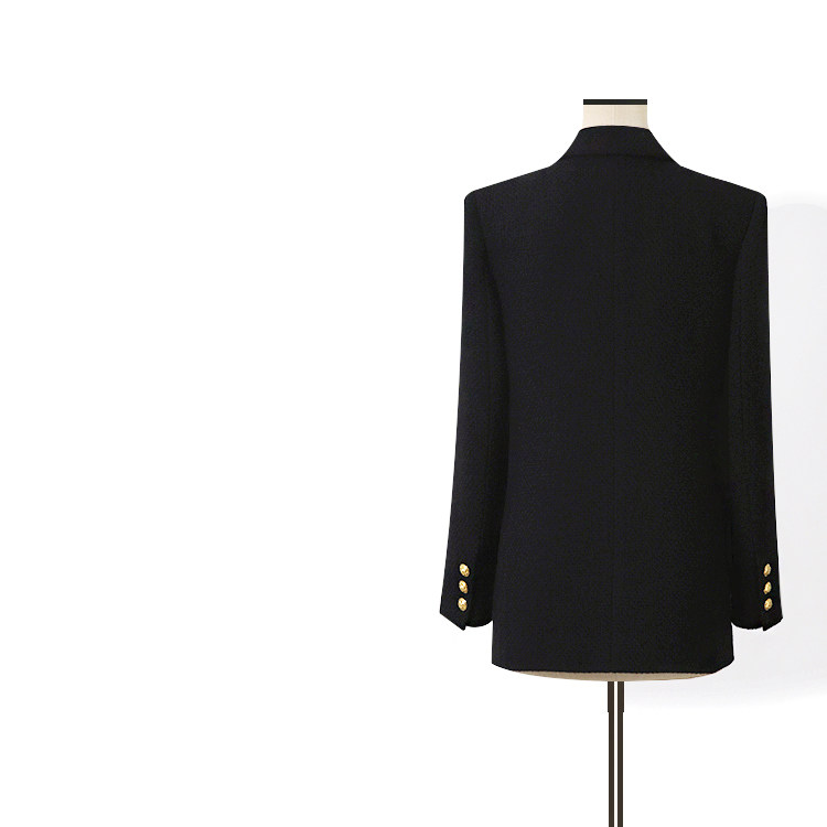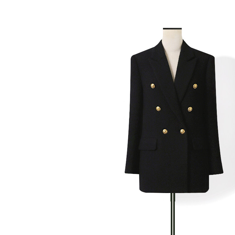 美裁 黑金中长款 复古双排扣女士高端羊毛收腰正肩西装 优雅老钱由