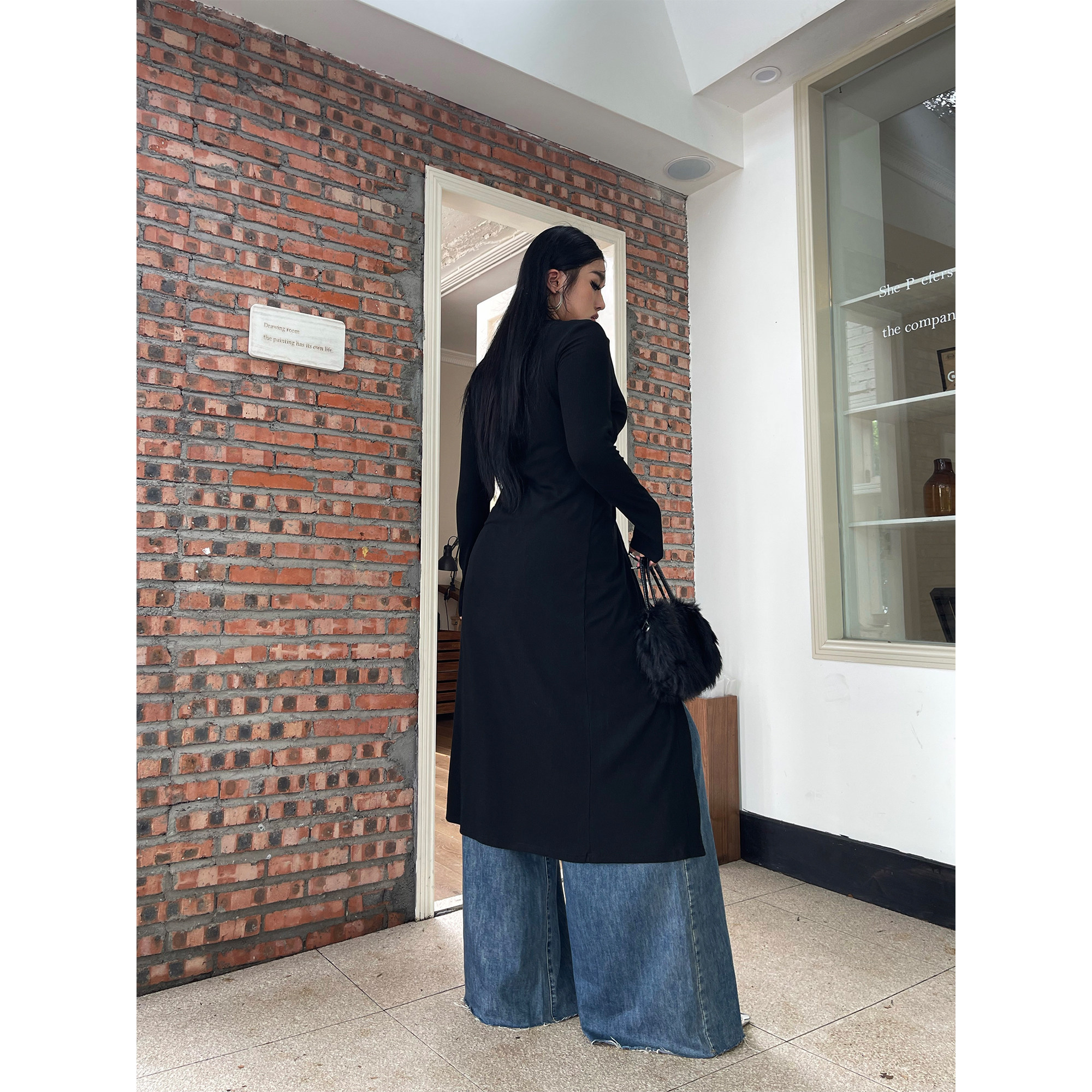 2026新款 楠哥微胖mm大码 慵懒气质黑色长款 开衫 百搭显瘦外套女 大码