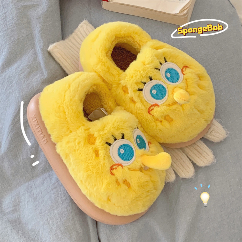 正版 保暖加绒棉拖鞋 男女居家防滑亲子休闲软底月子鞋 海绵宝宝冬季由