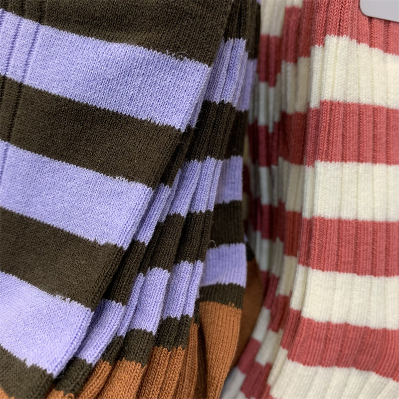 2023秋季 女袜韩国东大门甜美拼色条纹棉质针织弹力袜子中筒袜 新款