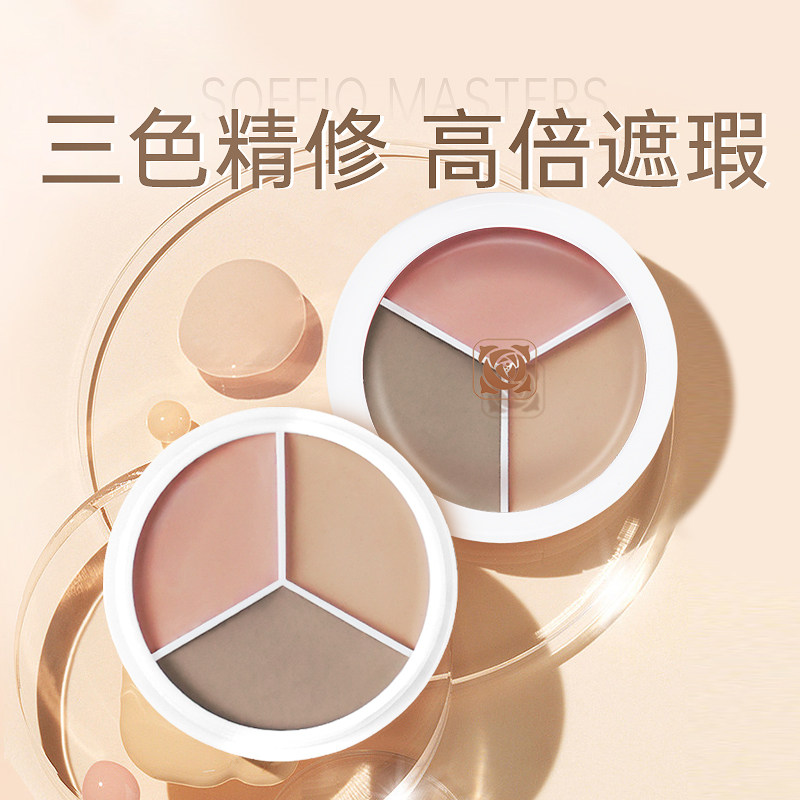 修容盘 索菲欧三色遮瑕膏遮盖斑点黑眼圈泪沟纹身脸部痘印强力保湿