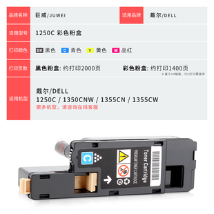 为您提供商品1350cnw墨盒1355cw 巨威 适用戴尔1250粉盒Dell 1250C 复印机墨粉筒粉仓含载体 1355cnw彩色打印机墨粉碳粉的详细介绍,