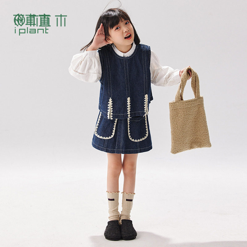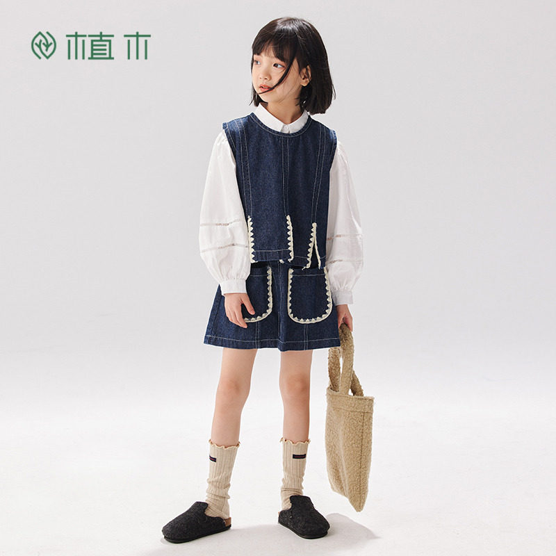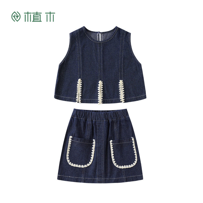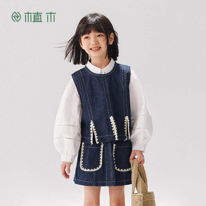 中大童装 件套 撞色贝壳绣牛仔2026春女童套装 植木童装 断码 捡漏由