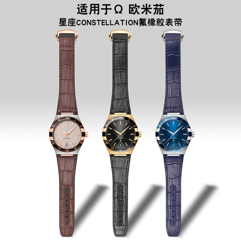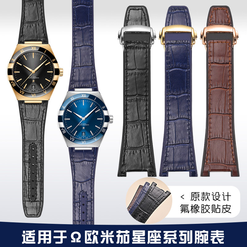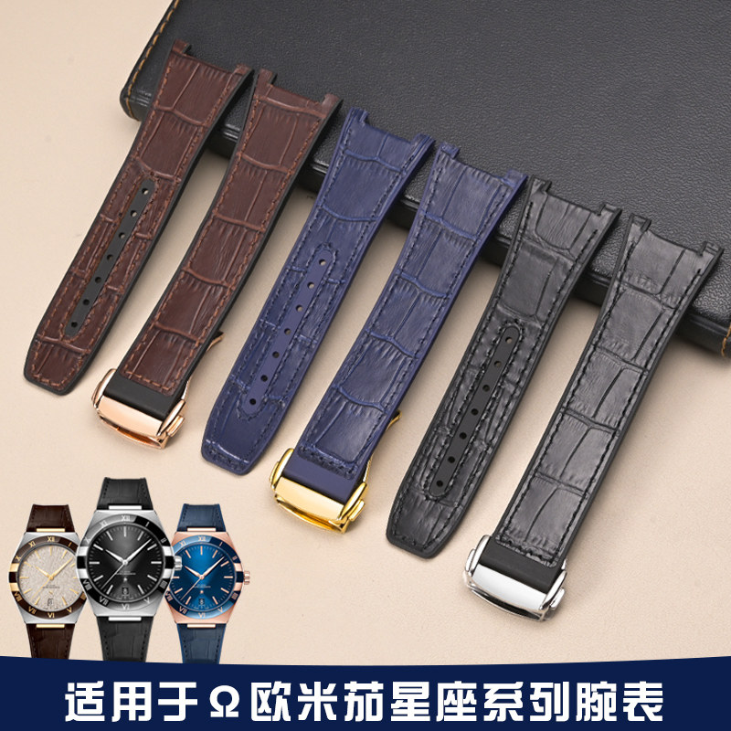 凹口橡胶表带适用于OMG欧米茄星座手表带至臻天文台真皮表带25由