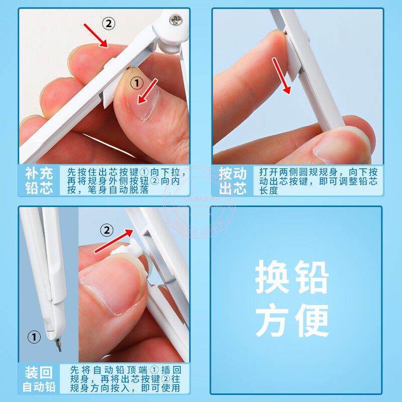 儿童制图工具画圆神器 三年二班圆规小学生专用数显带刻度按动初中生多功能锁距尺规替换笔芯高中专业绘图套装