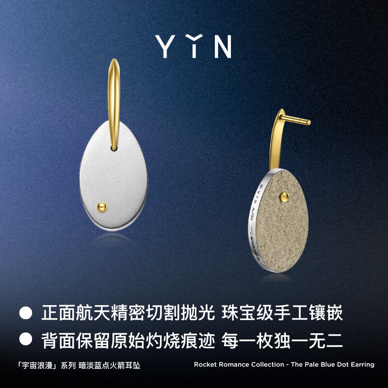 YIN隐火箭耳钉原生坠片科技材料18K金情侣礼物小众设计宇宙浪漫由