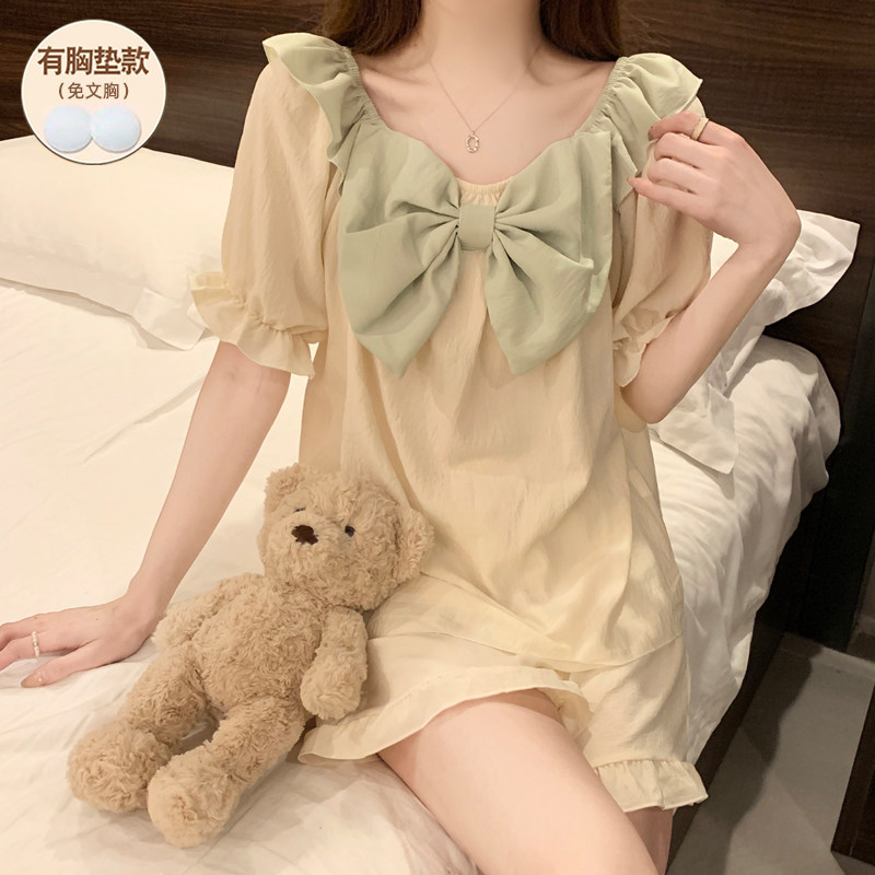 为您提供商品2025年新款 夏短袖 桑蚕丝可爱甜美家居服可外穿大码 带胸垫睡衣女款的详细介绍,