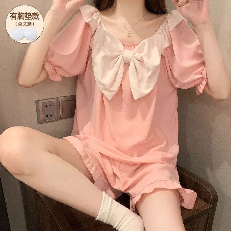 2025年新款 夏短袖 桑蚕丝可爱甜美家居服可外穿大码 带胸垫睡衣女款