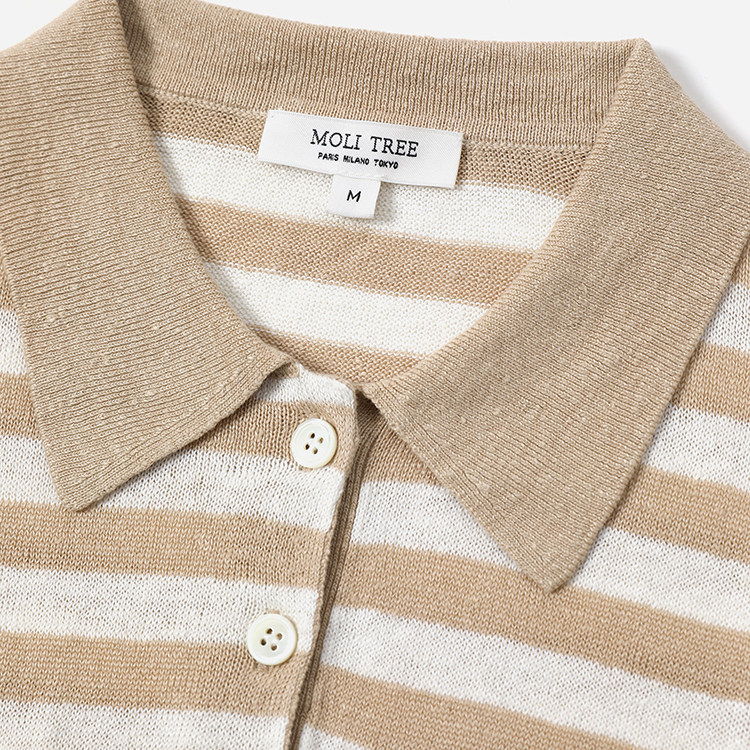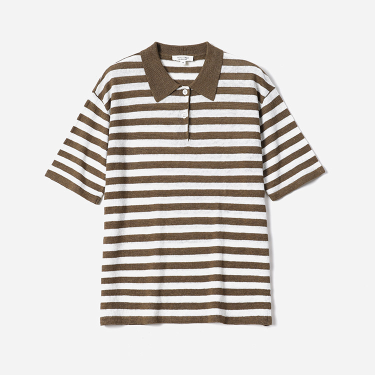 针织套衫 女 C清新条纹凉爽全亚麻POLO领短袖 WZT07337 茉莉雅集