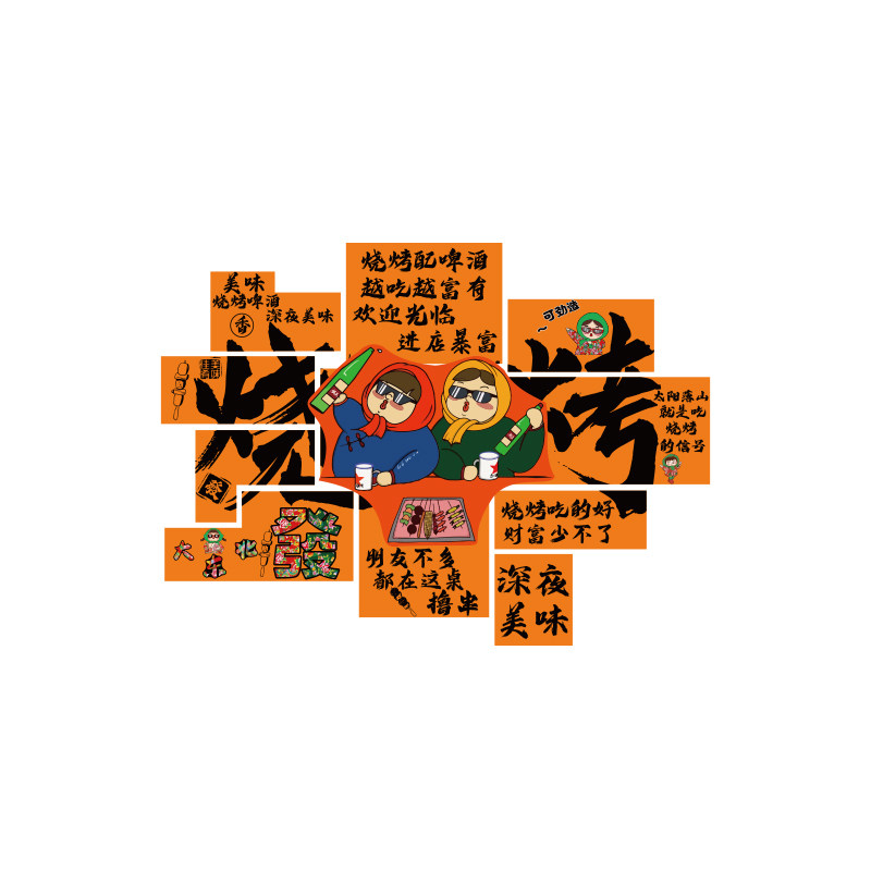 饰创意形象墙面餐饮背景布置广告海报贴纸挂画 网红东北烧烤肉店装