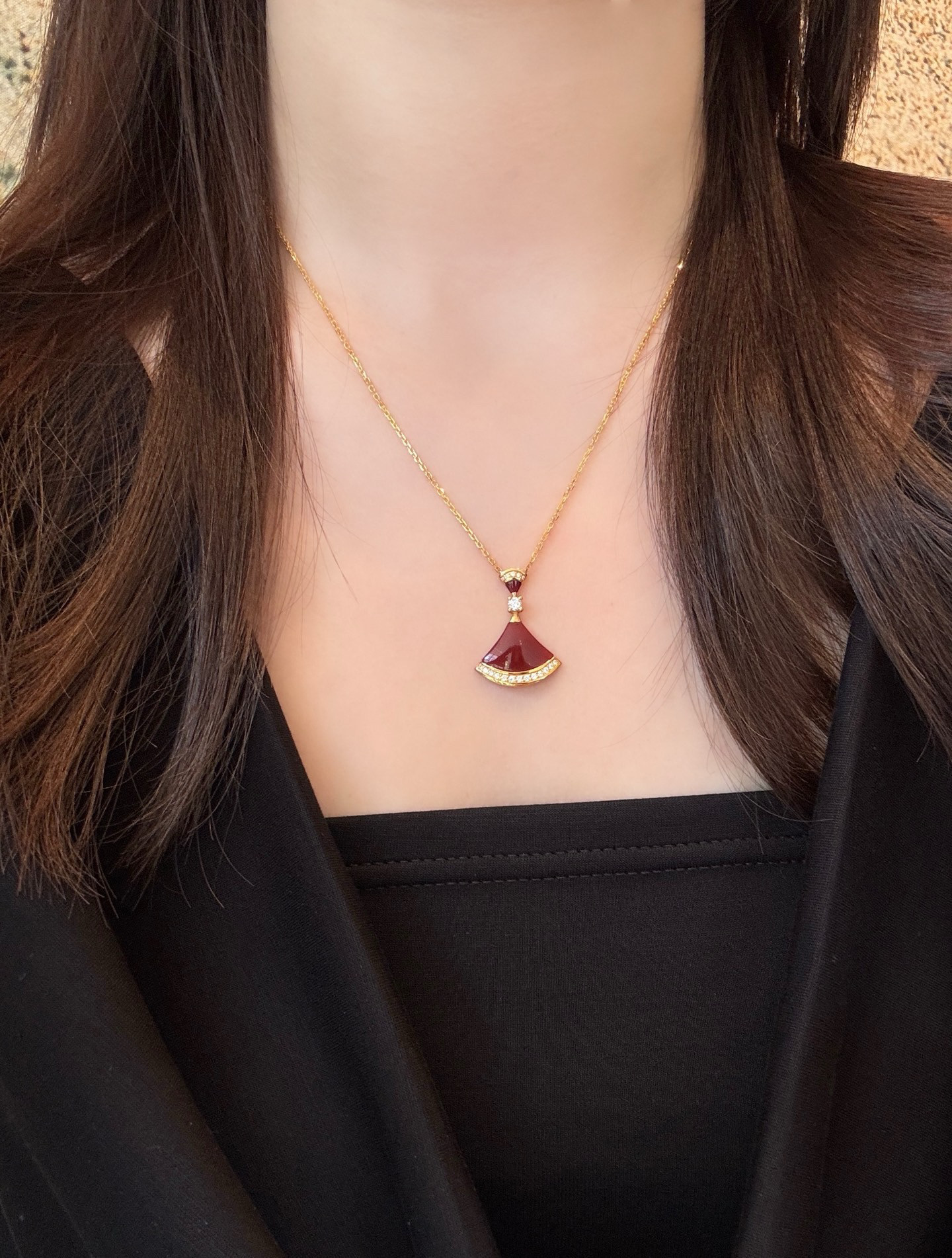 红玛瑙小裙子项链黄金镶嵌999足金套链由