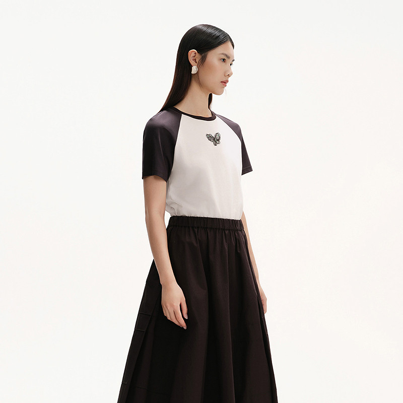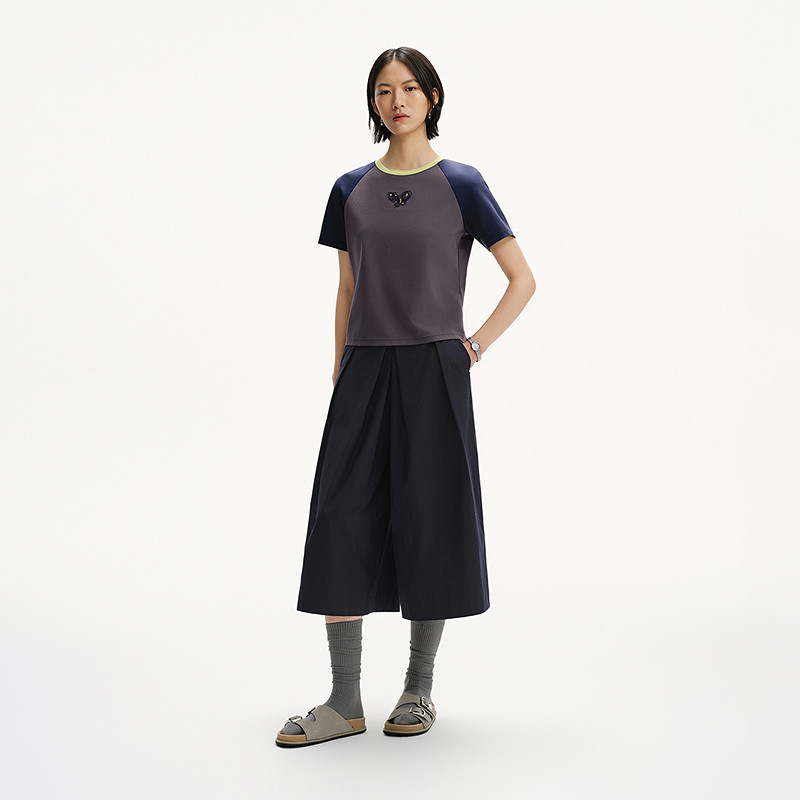 撞色圆领短袖 播奥莱 播商场同款 上衣BDS2YD2516 T恤女25夏美式