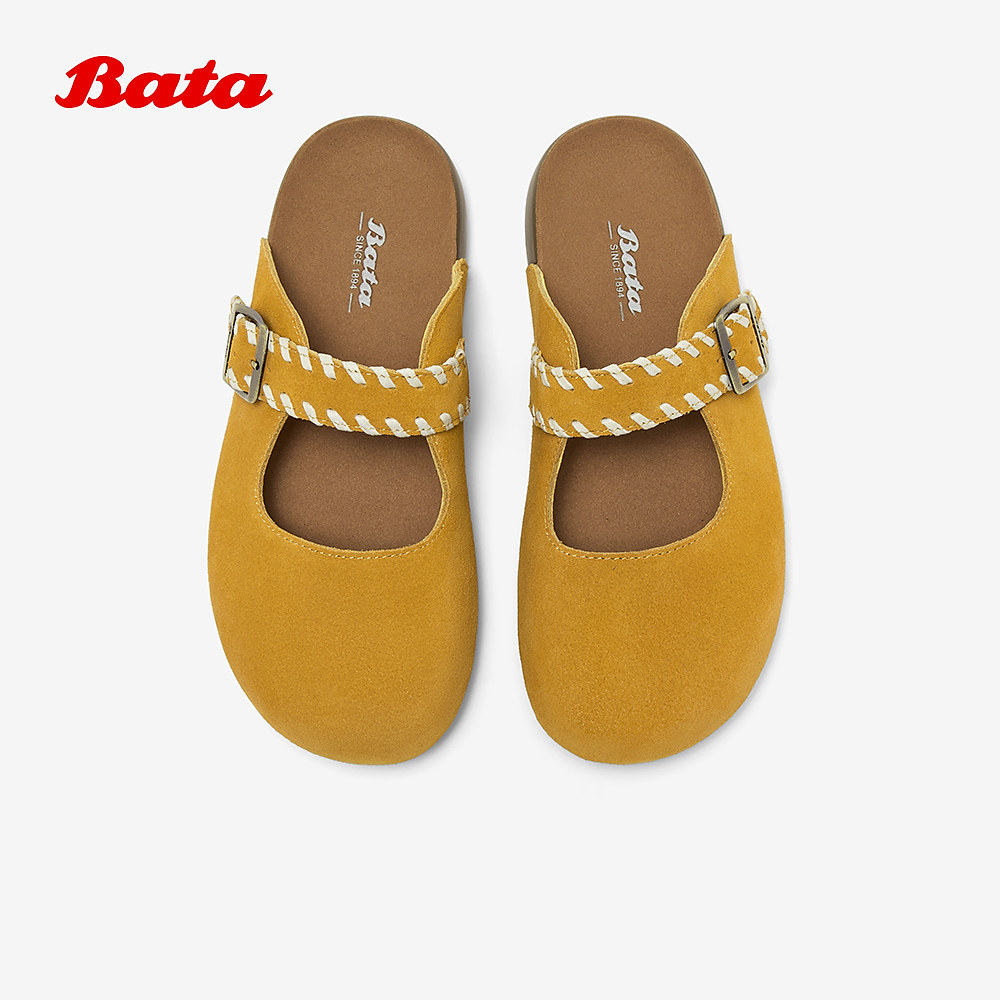 英伦风牛剖皮厚底凉拖鞋 3094DCH5 女秋商场新款 Bata编织勃肯鞋由