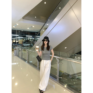 大小姐77 弹力修身 短袖 T恤女 亨利领口强捻纱百搭简约亲肤透气夏季