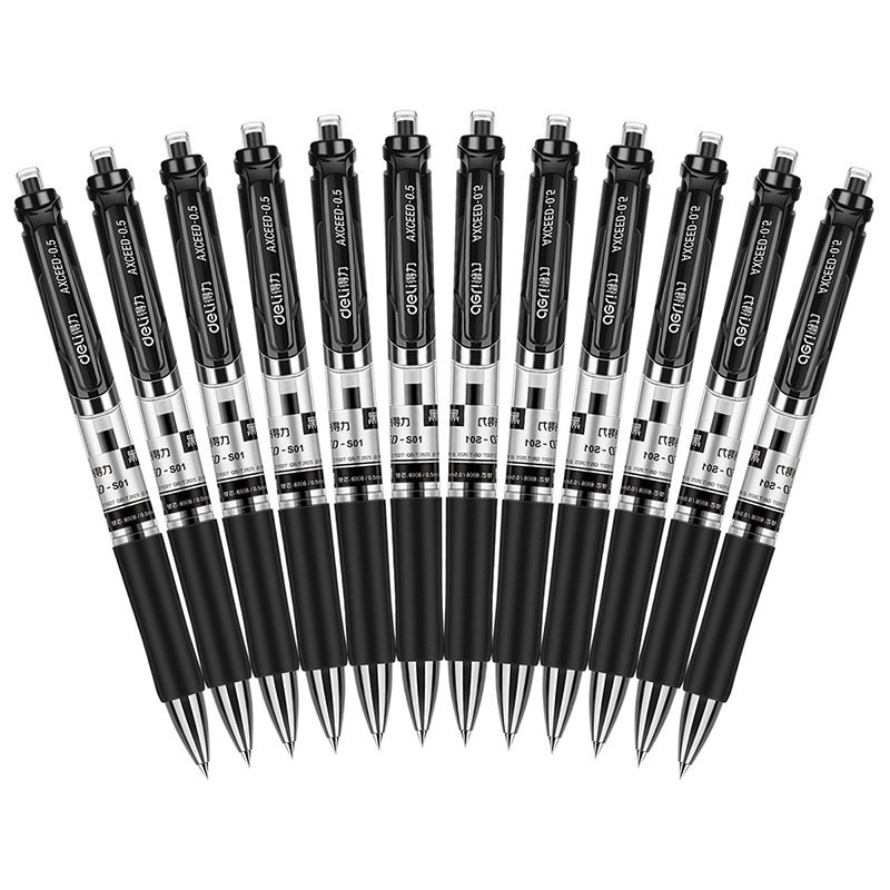 得力S01按动中性笔子弹头0.5mm签字笔黑色蓝色红色商务签字学习由