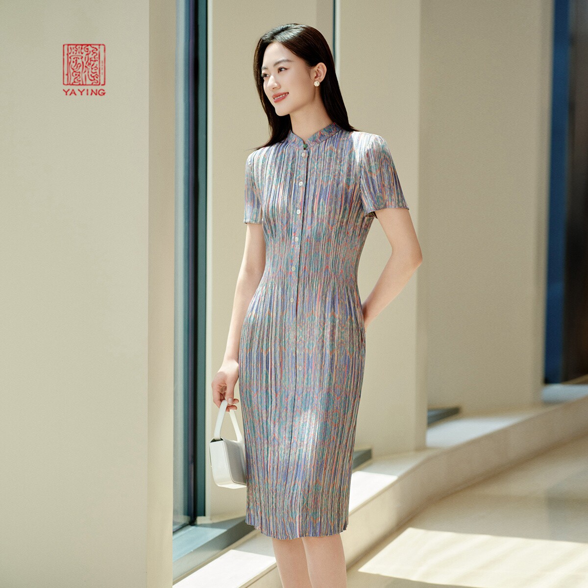 新款 4629A 渐变压褶收腰旗袍裙显瘦连衣裙2025夏装 EP雅莹高端系列由