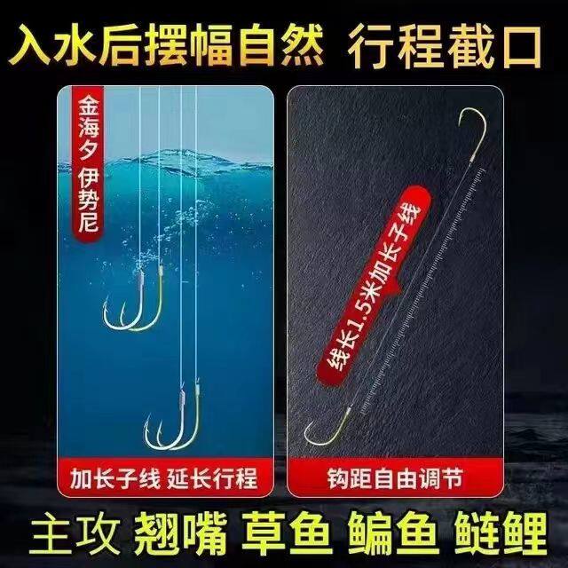 翘嘴长子线双钩大物钩子青草鳊鱼鱼钩金海夕加长子线双钩成品绑好由