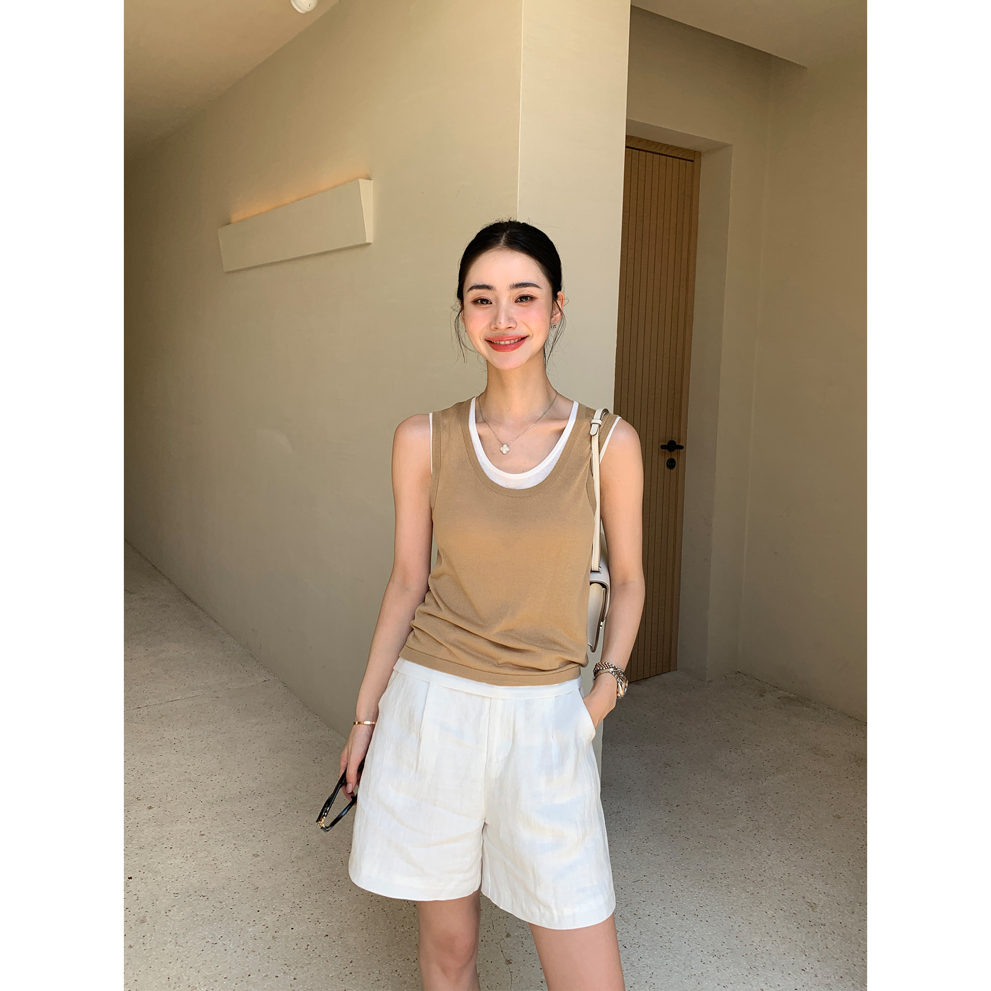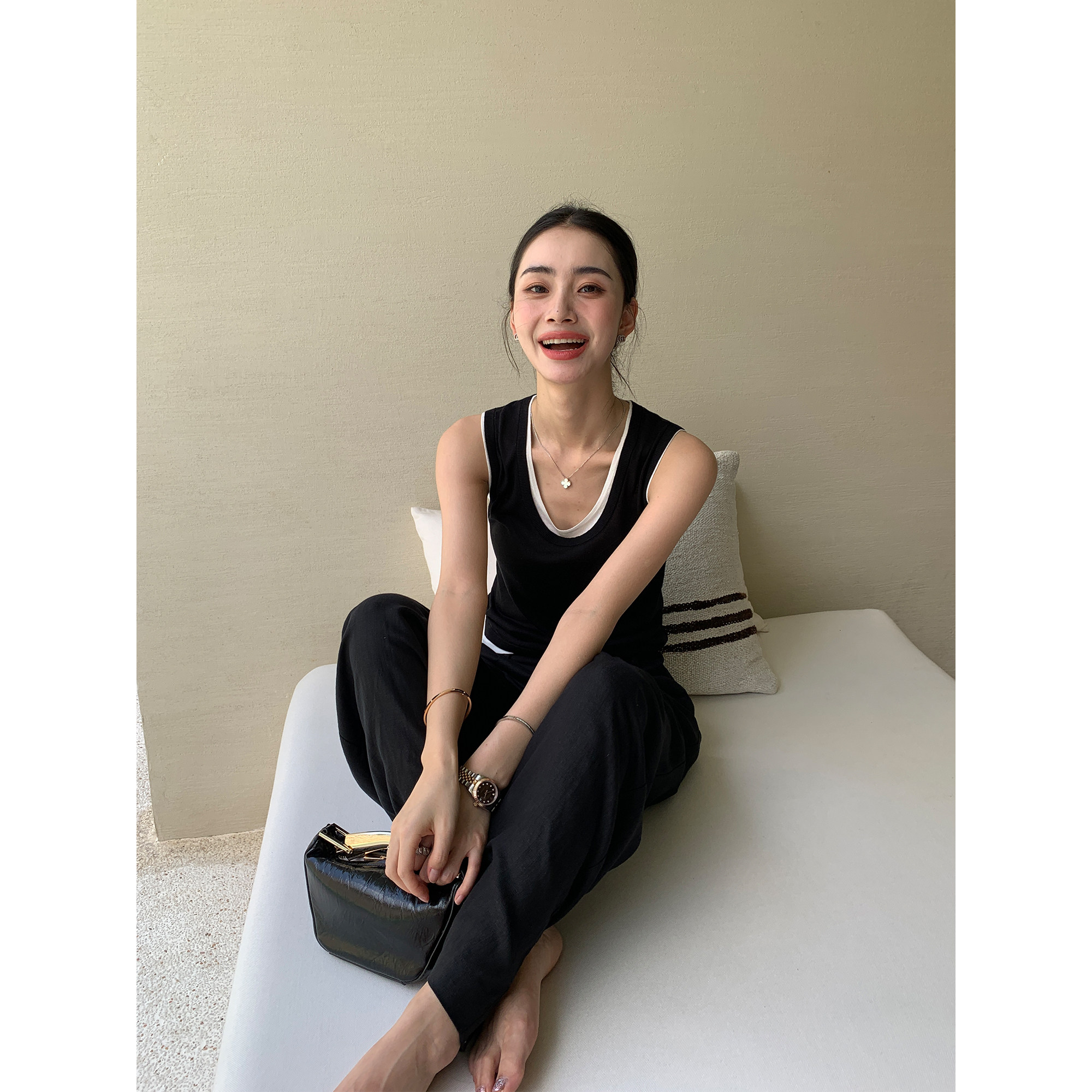 Maven 人手一件 莱赛尔撞色U领吊带背心女外穿假两件无袖 上衣 Lin