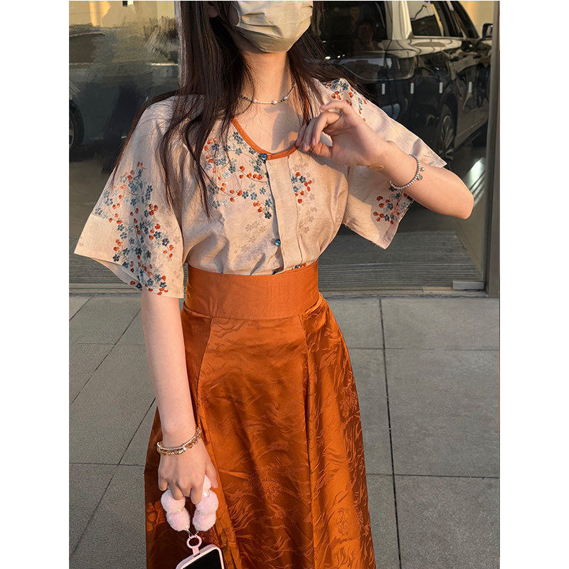 春夏改良汉服套装 053 明制对交穿短衫 百迭裙女 两三松原创新款