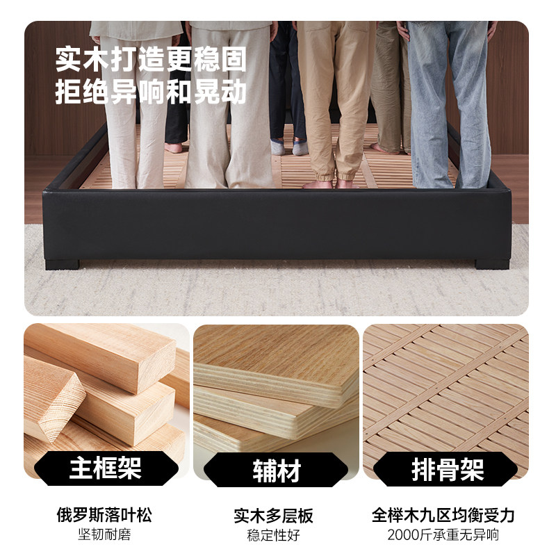 慕思皮床主卧婚床真皮床现代简约实木床架轻奢网红皮艺床双人慕斯