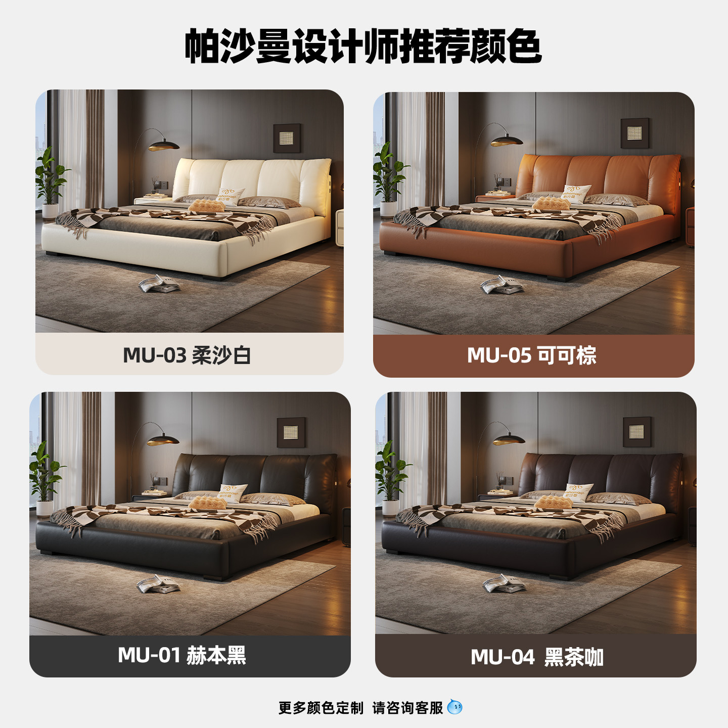为您提供商品软包皮床现代轻奢高级感婚床 帕沙曼真皮床主卧大床1米8双人床意式的详细介绍,