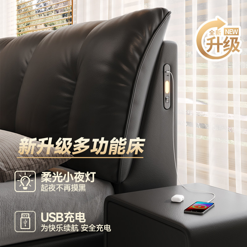 真皮床2米x2米2主卧大床现代轻奢高级感1米8皮艺软包储物婚床 意式