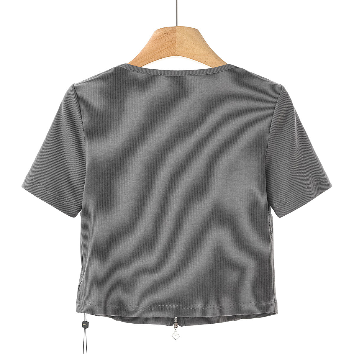夏装 莫Y 37.4粘纤 T恤163 修身 针织短袖 U领套头拉链短款 469由