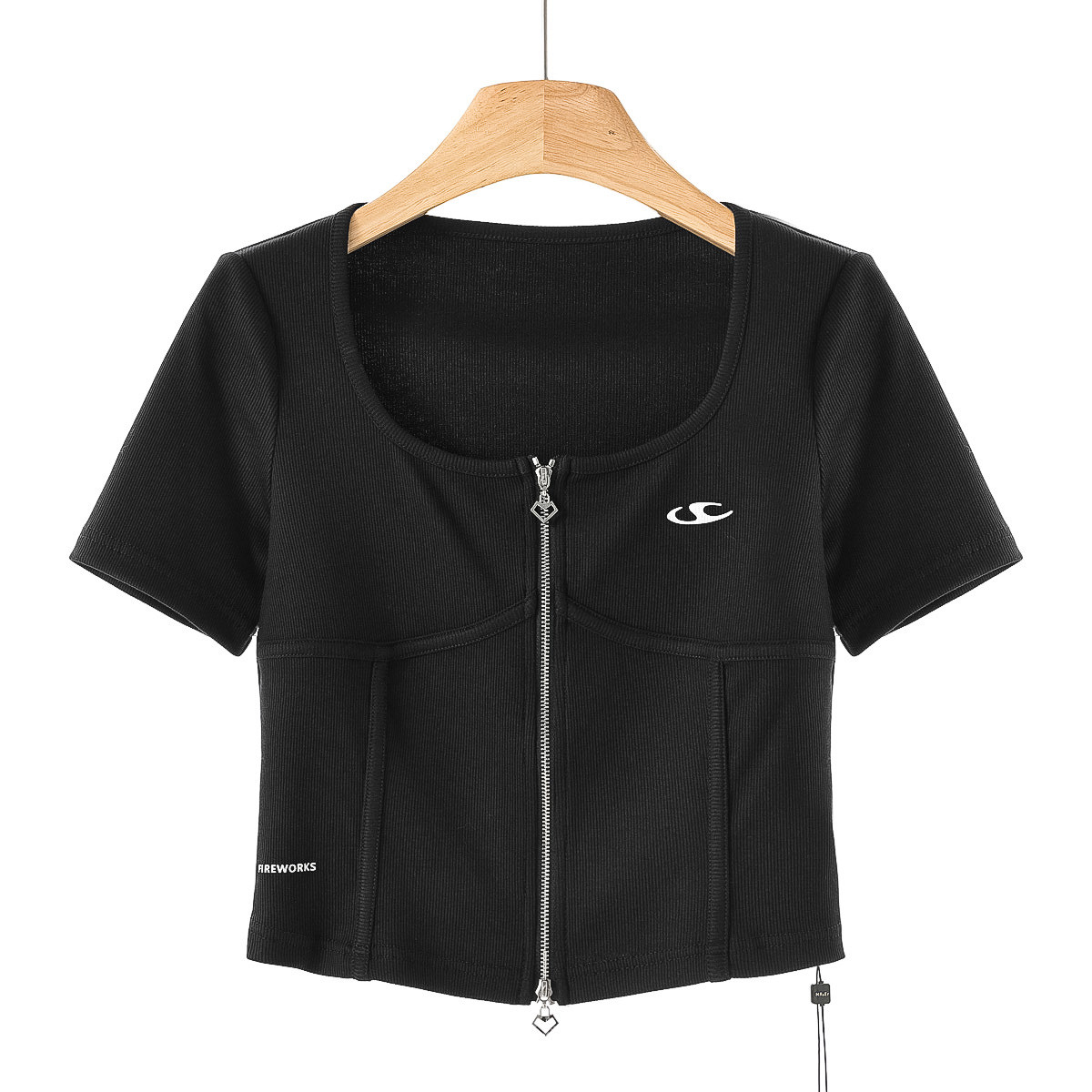 夏装 莫Y 37.4粘纤 T恤163 修身 针织短袖 U领套头拉链短款 469
