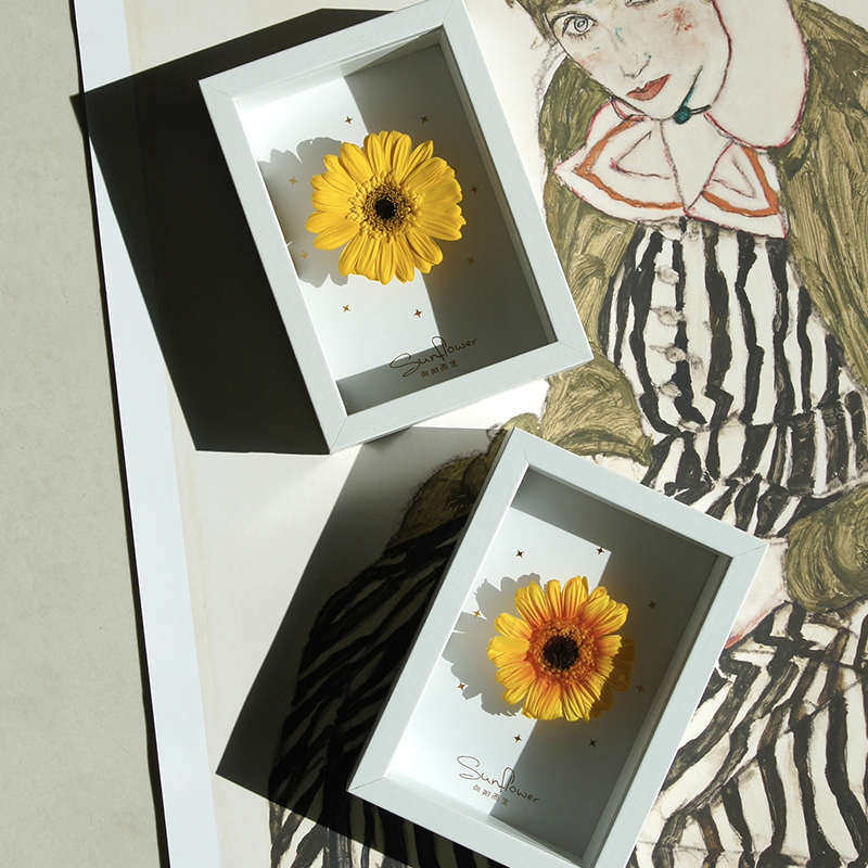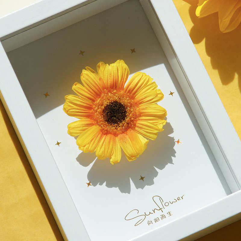 永生花植物标本立体装 饰画摆件送长辈朋友爱人 向阳而生 太阳花