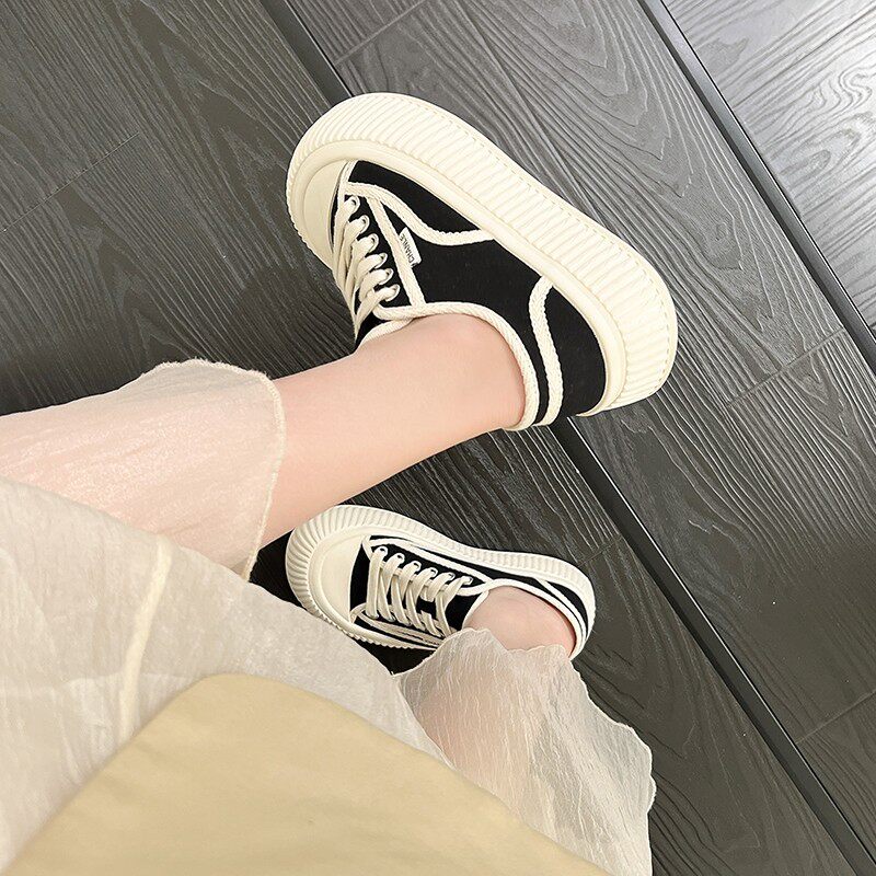 子秋夏爆款 大头帆布鞋 女厚底增高新款 鞋 百搭松糕面包饼干休闲板鞋