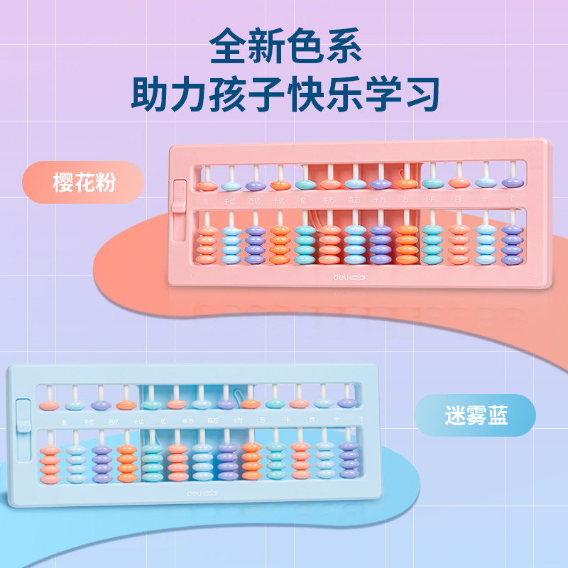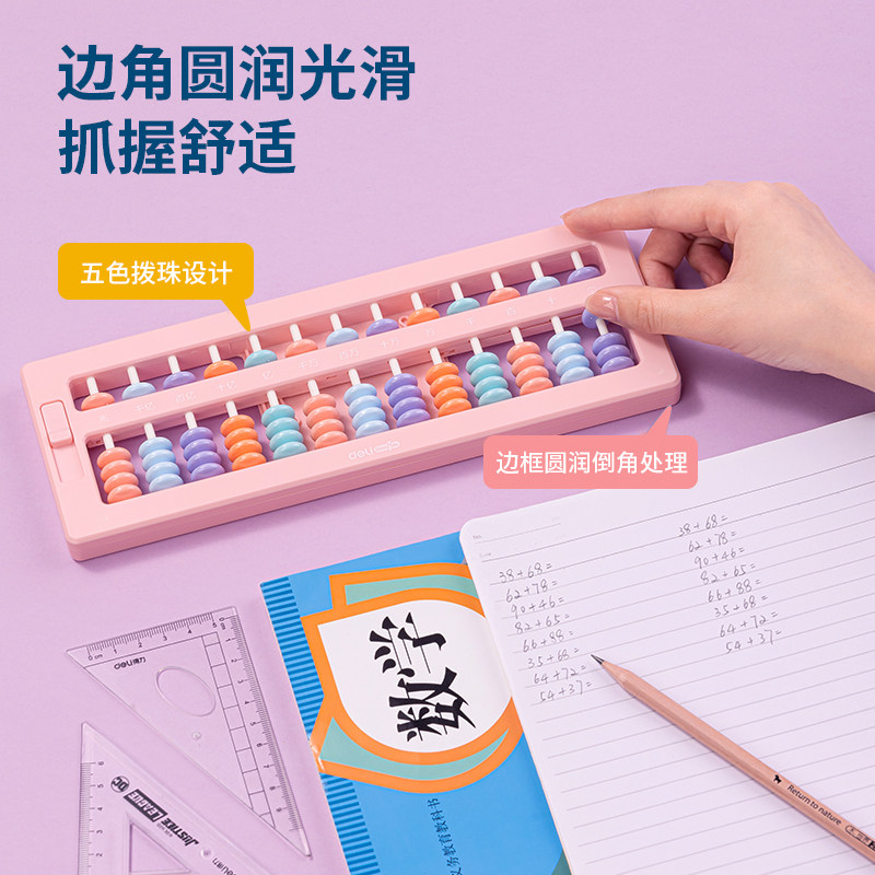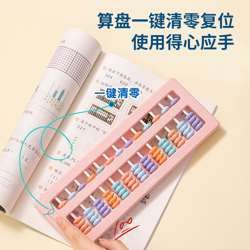 得力算盘小学生幼儿园珠心算儿童计数器数学算数运算学习用品教具二年级珠算小算盘计算架加减法教具算术