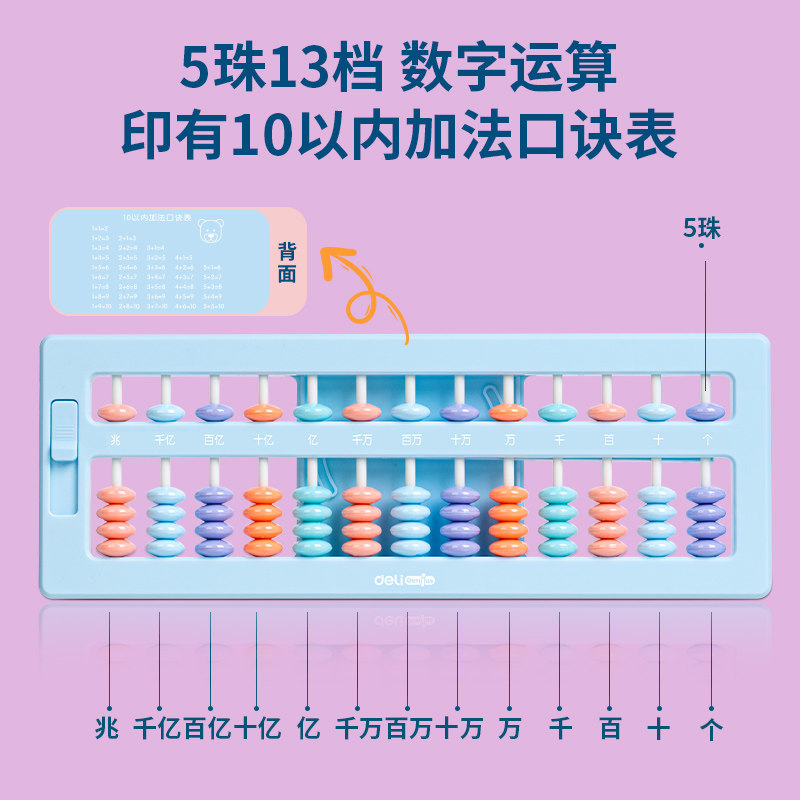 5珠7珠13档数字数学学具算术算数教具神器 得力算盘二年级上册小学生专用儿童珠心算一年级幼儿园五珠珠算老式