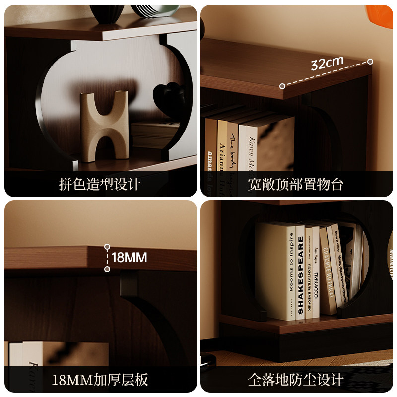 自由组合格子柜收纳小书架楼梯下单个小型储物柜带门简易柜子书柜