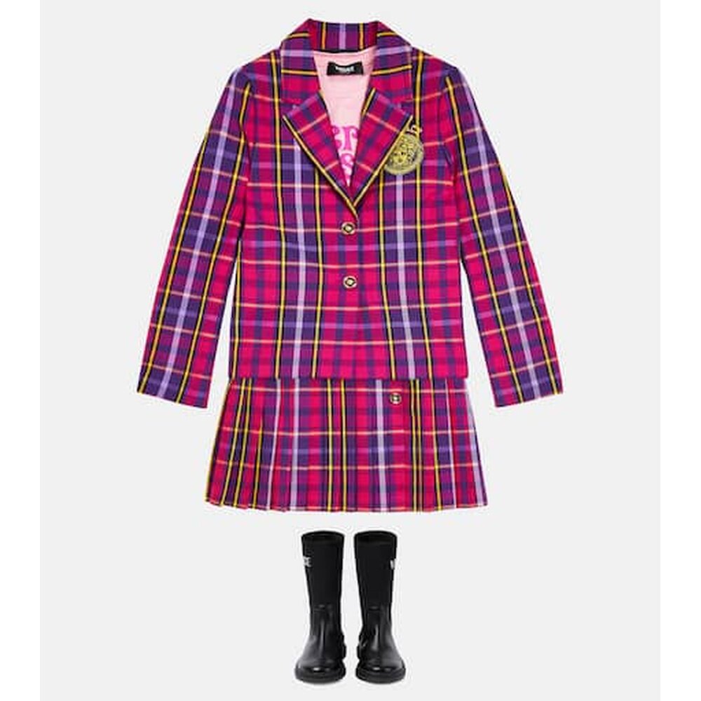 香港直邮Versace 女童 格纹褶裥半身裙童装 003711 Young由