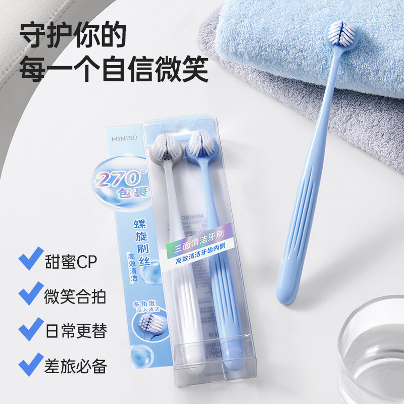 ⭐小红书推荐⭐立体超细软毛情侣牙刷清洁牙渍 MINISO名创优品三面清洁牙刷两支装,所属牙刷/口腔清洁工具分类,由淘宝网挑选推荐!小红书抖音网红同款!哪里有卖立体超细软毛情侣牙刷清洁牙渍 MINISO名创优品三面清洁牙刷两支装和多少钱质量怎么样✅。