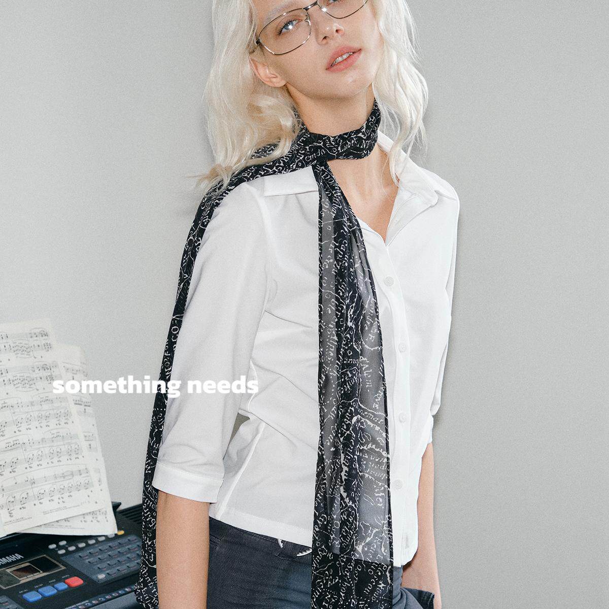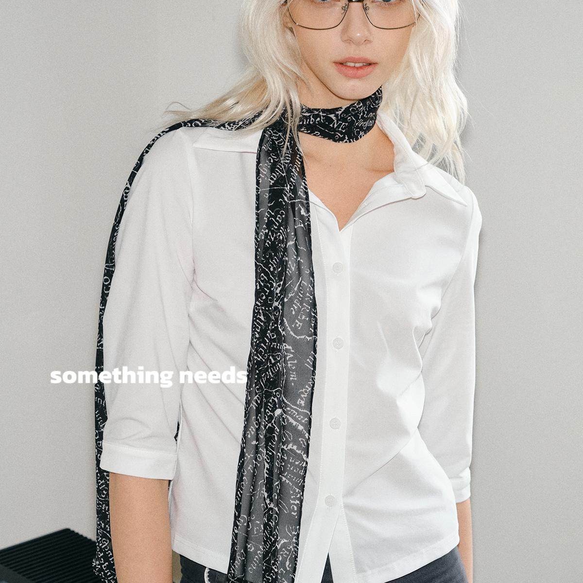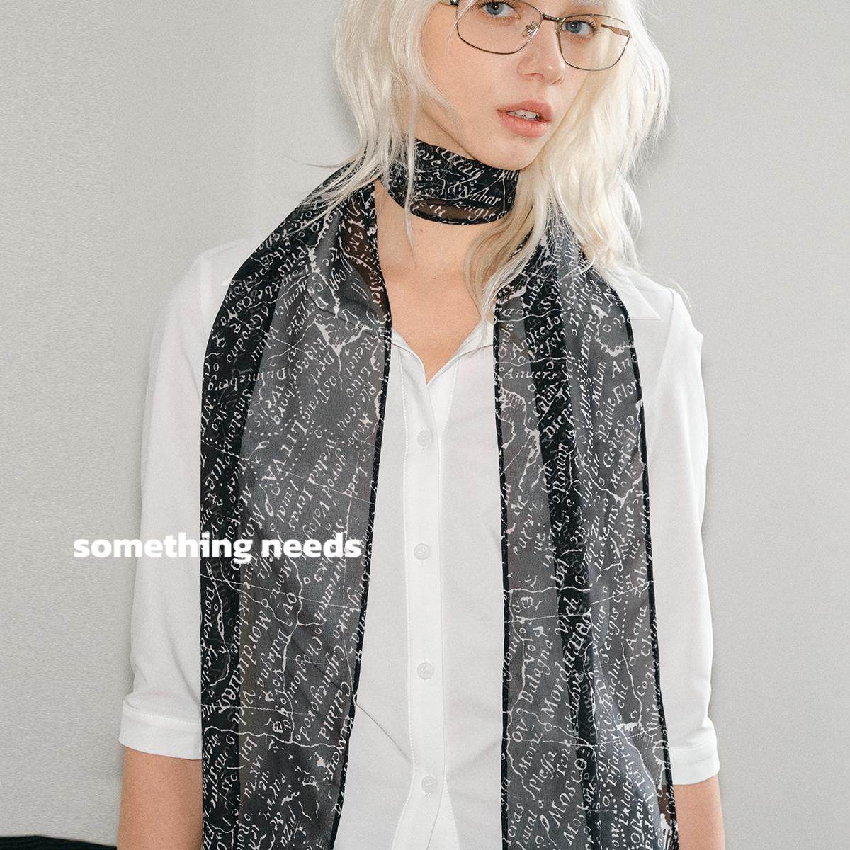 百搭辣妹丝巾女春夏字母复古头巾文艺薄款 长条飘带潮 时尚 郑佰万由