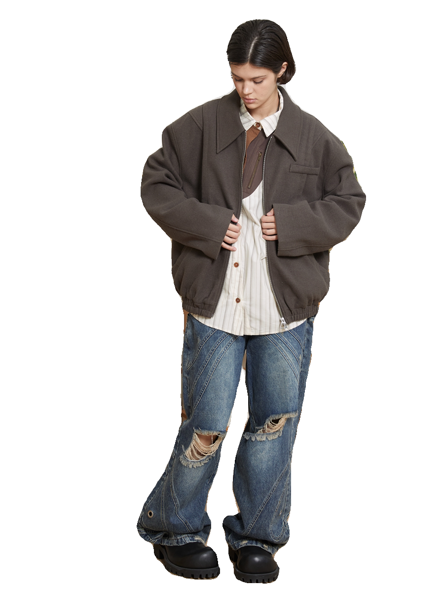 fit ERRORCODErobot大地棕毛纺流线形合身剪裁高级基础夹克clean