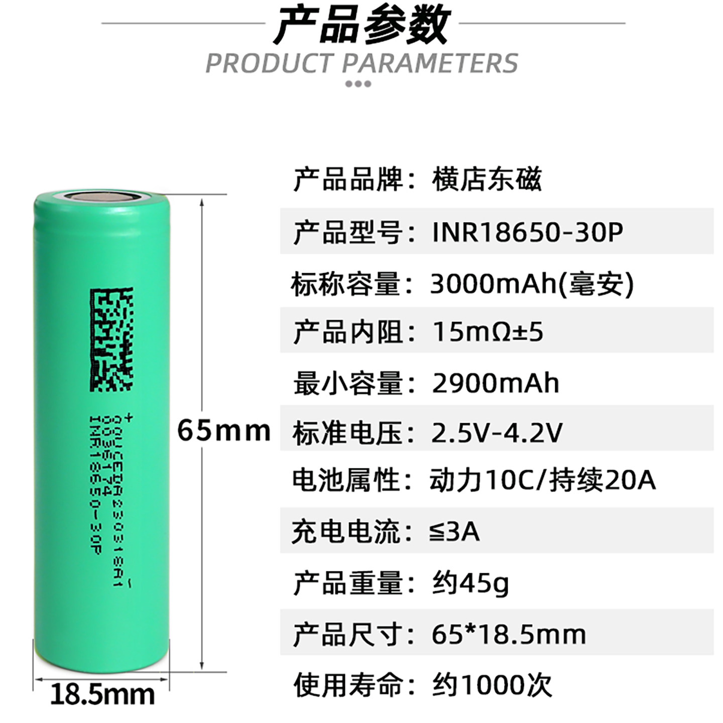 全新东磁18650锂电池大容量3000mah动力10c大功率电池适用手电筒