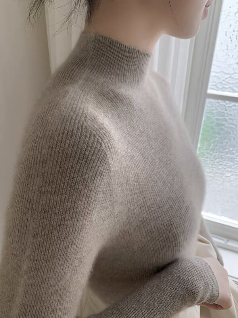 针织打底衫 女半高领宽松毛衣秋冬加厚羊绒长袖 品牌高级感羊毛衫